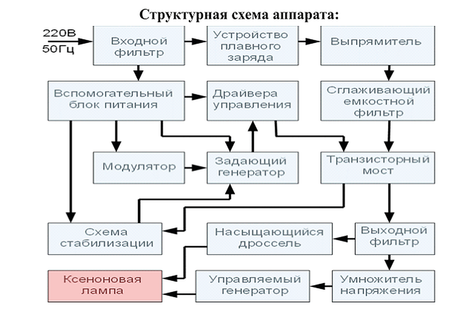 Аппарат предназначен для питания дуговых ксеноновых переменным током.